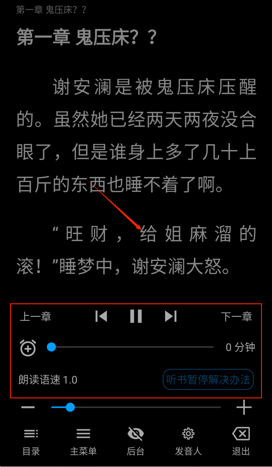 4、如果听到精彩部分想回头看文字,可以随时切换回阅读模式,系统会自动记录听到的位置不会丢失进度啦。