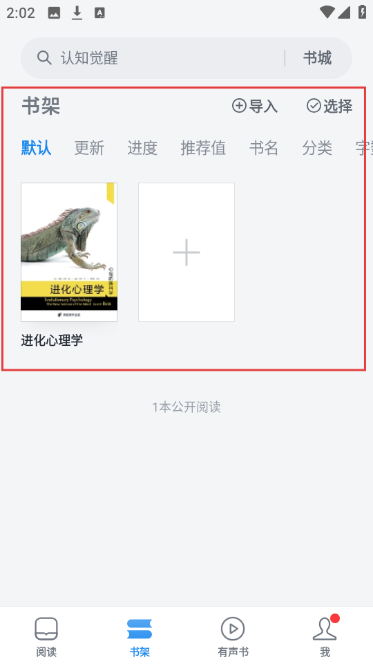4、书架页可看到《进化心理学》,随时可继续阅读,是不是很赞呀。