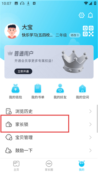 2、进入个人中心后点击【家长锁】选项,就能跳转到家长锁设置页面,准备配置家长锁啦。