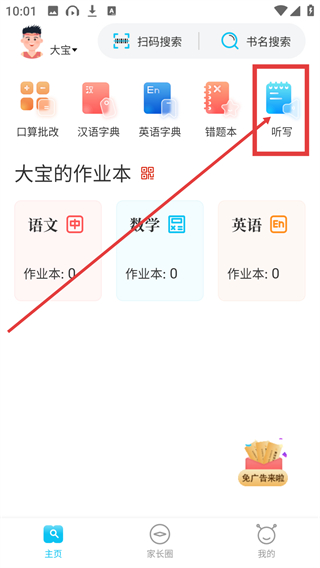 1、在首页点【听写】功能按钮,能进入听写界面,后续可选择对应科目课本进行听写练习啦。