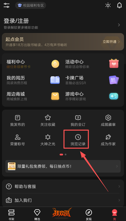 3、登录后能解锁完整功能,比如开通起点会员可以畅读出版书和有声书,在我的页面里,也能查看阅读记录和全订成就。