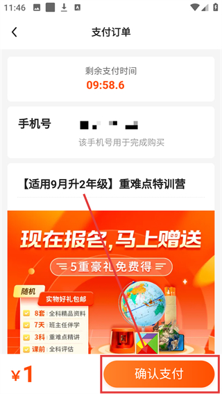 4、进入支付订单页面后,确认信息无误,点击【确认支付】就能完成训练营的报名啦。