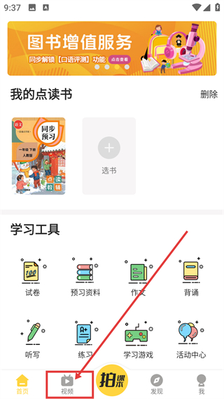 1、在首页底部点击【视频】选项,就能进入同步预习视频的筛选页面,找到对应的学习视频啦。