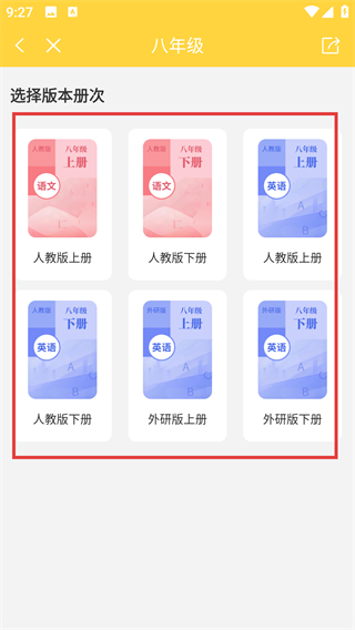 3、在版本册次选择页,挑选目标课本(比如八年级下册人教版语文),就能进入单元-课的选择界面啦。