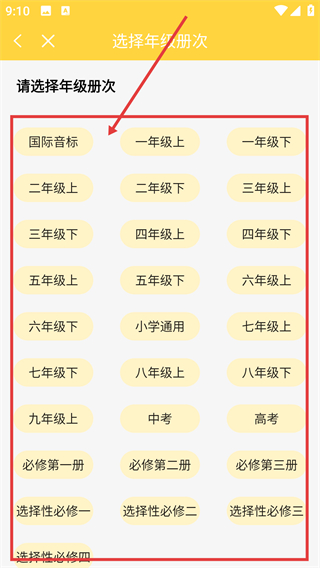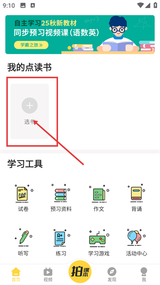1、在首页点【我的点读书】区域的【选书】按钮,能进入年级册次选择界面,后续可挑对应教材啦。