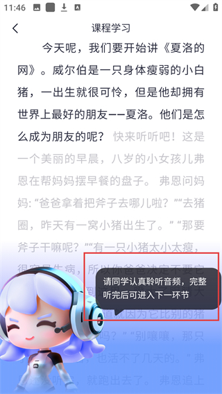 4、进入课程学习后,认真聆听音频内容,等完整听完就能解锁下一个学习环节,继续学习啦。