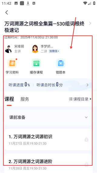 4、报名成功后,进入课程学习页,可查看课程目录、学习资料等,等待直播课开启即可参与学习啦。