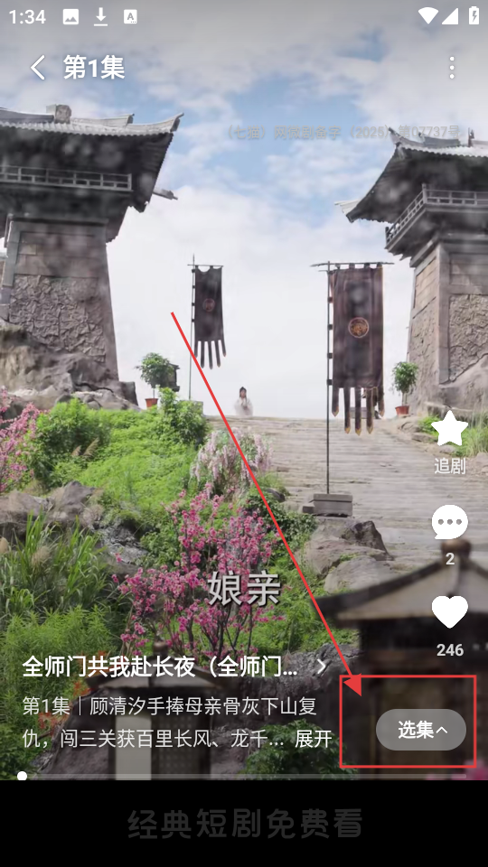 3、进入短剧播放界面后,找到【选集】按钮,点击它,展开剧集选择列表,方便选择想看的集数啦。