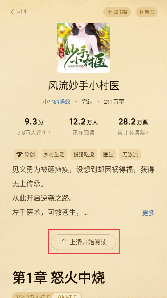 4、最后在小说阅读页面,上滑屏幕,就可以开始阅读小说,沉浸在故事中啦。