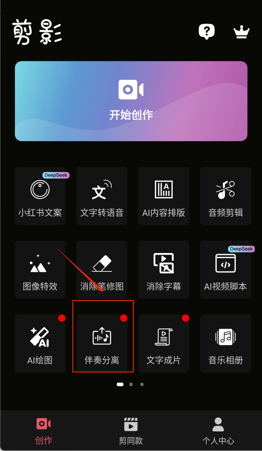 3、如果视频里有杂音,可以使用伴奏分离功能,它能智能分离人声和背景音,让你能单独处理或替换背景音乐哟。