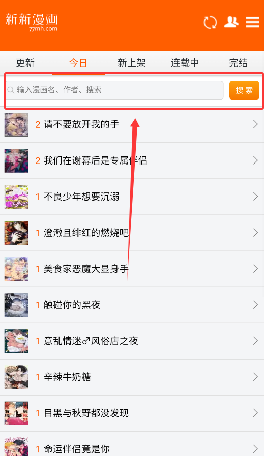 第二,如果想找特定漫画,可以使用顶部的搜索框,输入漫画名或作者名,点击搜索即可快速定位。