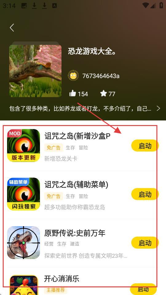 4、进入“恐龙游戏大全”详情页,能看到《诅咒之岛》等相关游戏,若想游玩某款,点击【启动】,就能开始游戏呢。