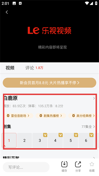 4、进入播放页面后,可看到影视的播放数据和剧集列表,选择对应集数就能开始观看啦。
