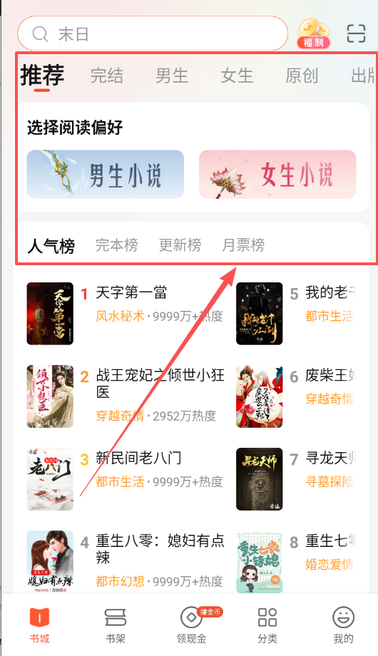 3、这个小说软件中会有很多的小说榜单,可以在这个榜单中找到很多火热小说让你观看。