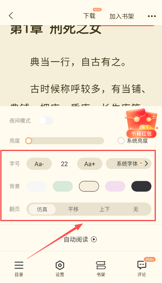 4、阅读设置选项允许用户自由调整界面背景和字体样式,打造最符合个人喜好的阅读环境,让您畅享无阻阅读乐趣。