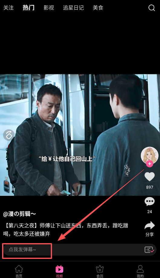 4、发弹幕是看剧的乐趣之一,找到弹幕发送入口,输入你的评论就能参与互动,看到自己的想法出现在屏幕上还挺好玩的。