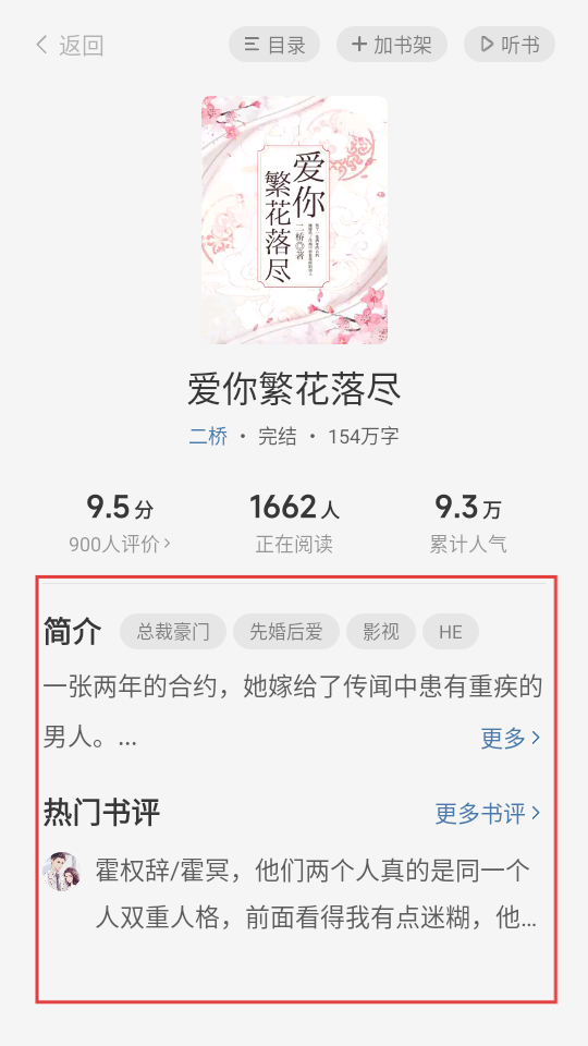 4、进入小说详情页,能看到简介、热门书评等内容,帮助了解小说,决定是否阅读。