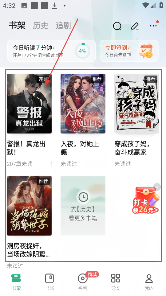 4、别忘了探索软件的赚金功能,在福利中心坚持完成任务如打卡、开宝箱,金币可兑换现金,让阅读时间产生实际回报,趣味十足呢。