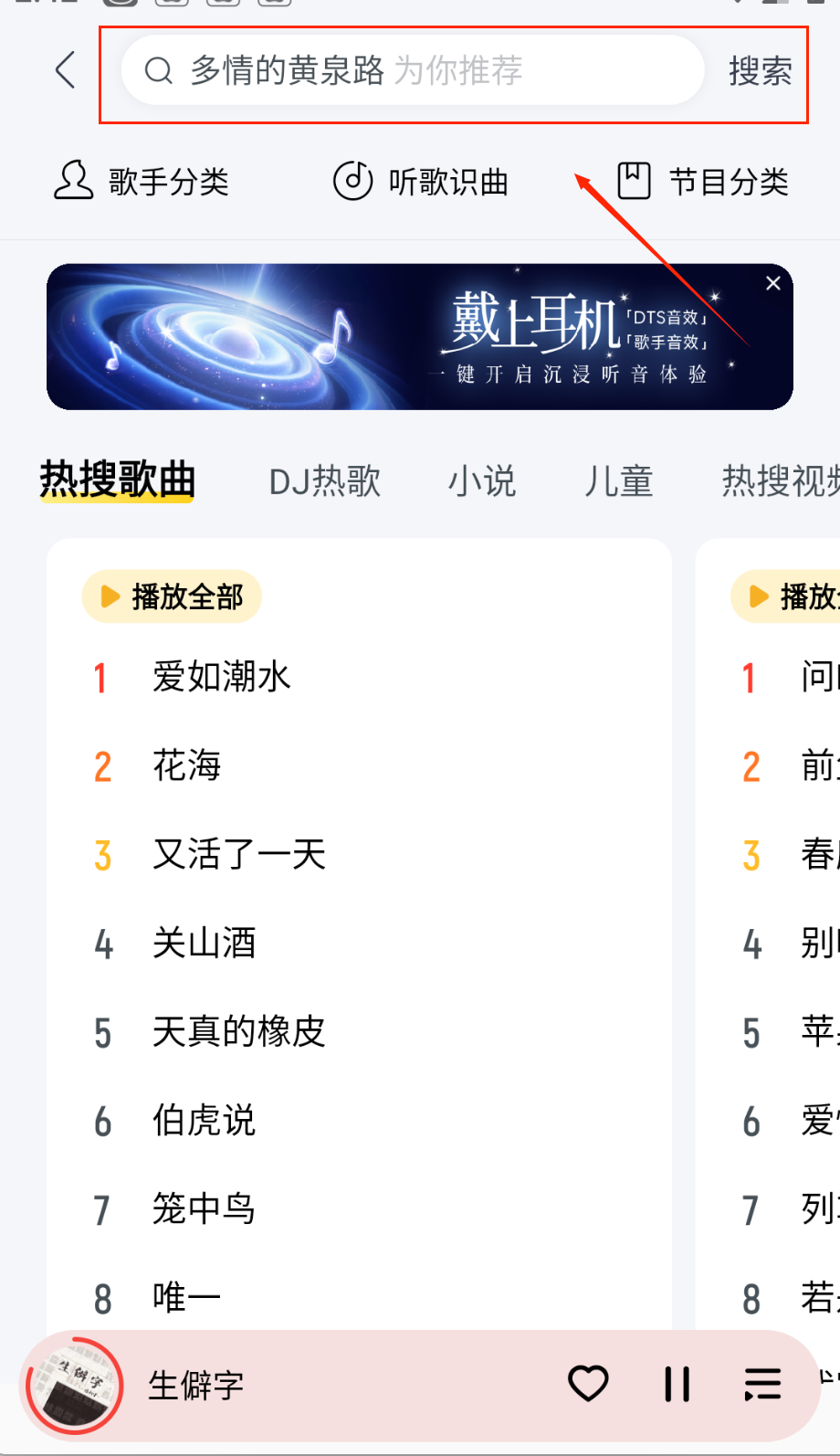 1、系统会根据你的听歌记录推荐类似风格的歌曲,比如刀郎和BEYOND,使用顶部搜索栏输入关键词如"大东北 连续飙升"就能找到特定歌单。