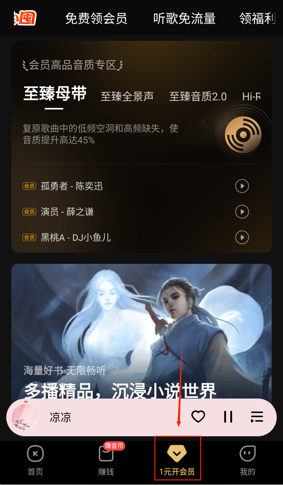 3、会员中心经常有新客1元开通活动,享受高音质、数字专辑免费听等特权,限时活动如年卡买一送一很划算,VIP专区每日会推荐独家歌曲。