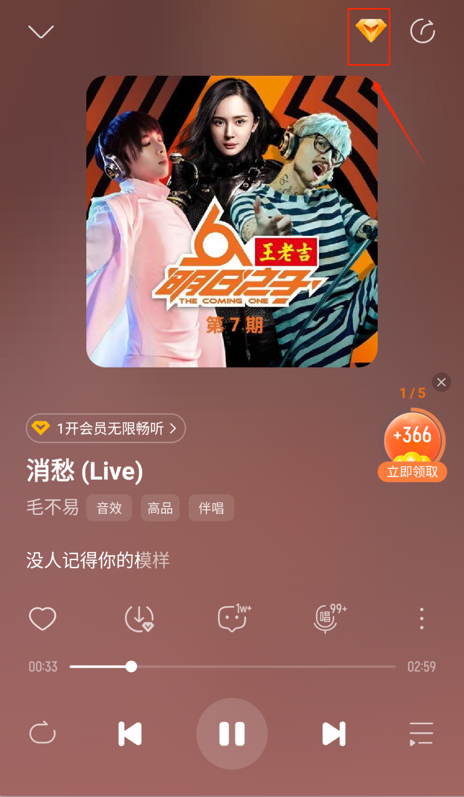 3、直播板块里有音乐现场和互动内容,例如歌手大壮的“我们不一样”可以点播,还能切换音质和伴唱模式,开通会员后更能无限畅听。