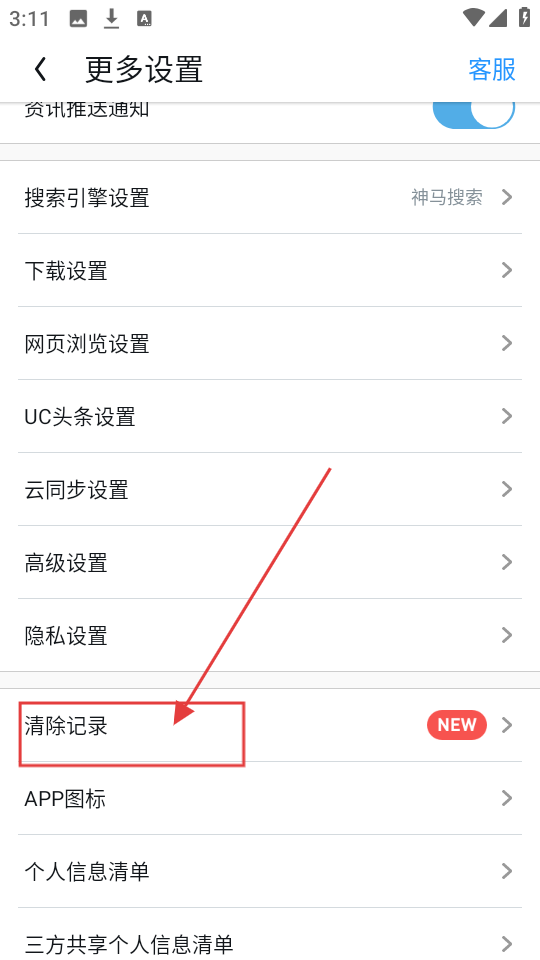 3、进入设置界面后,找到【清除记录】选项,点击它就能进入清理记录的具体页面啦。