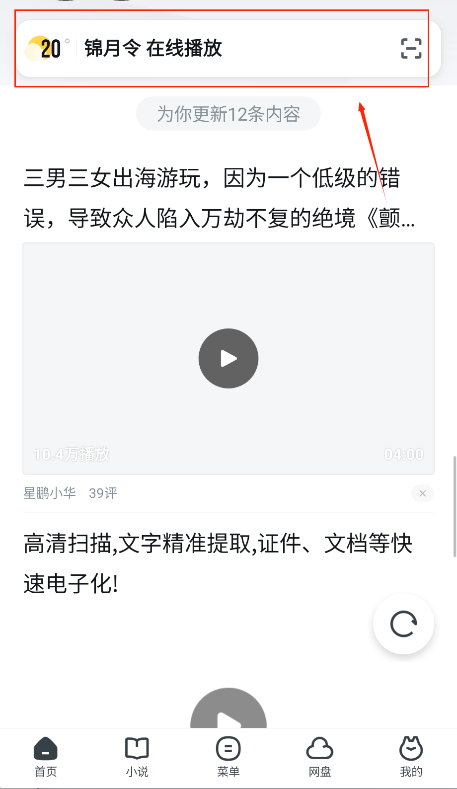 1、下载并打开UC浏览器,点击上方搜索框