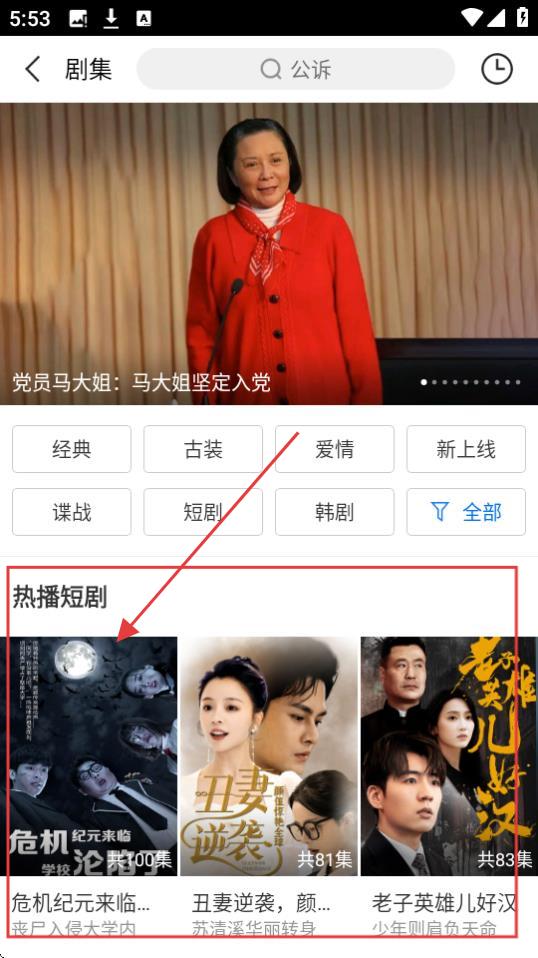 2、在剧集页面,“热播短剧”里有不少精彩短剧,选《危机纪元来临》,点击进入播放页。