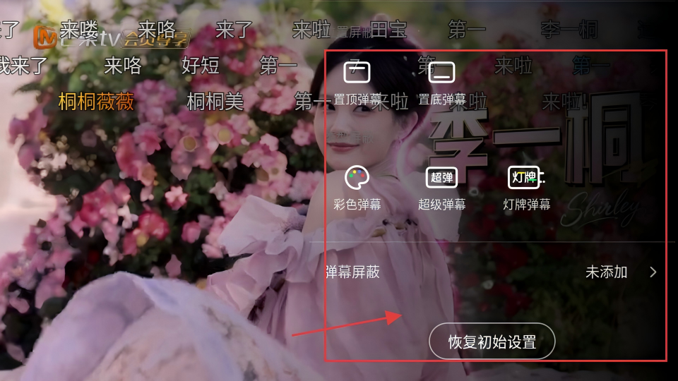 3、还能设置【彩色弹幕】【超级弹幕】【灯牌弹幕】,也可进行弹幕屏蔽或恢复初始设置,超实用的。