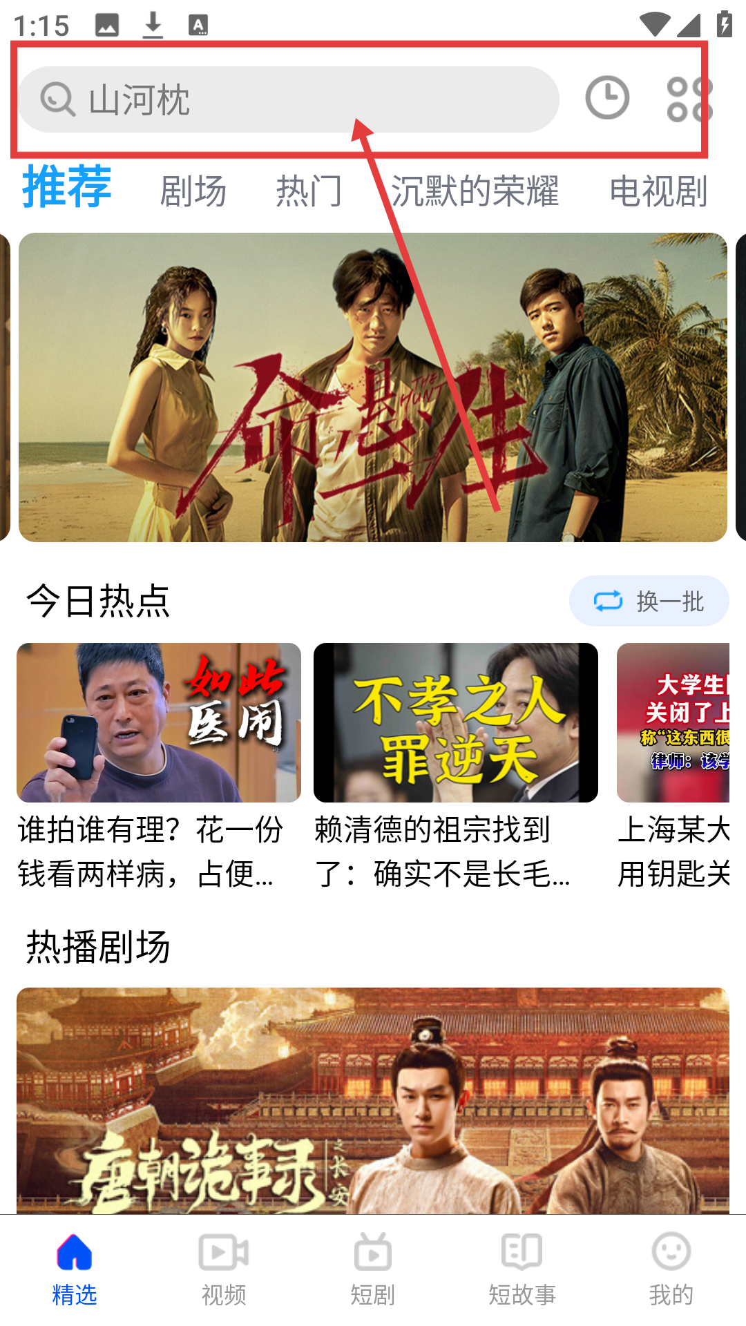 1、在软件首页点击搜索框,进入搜索页面可查找喜欢的剧集哦。