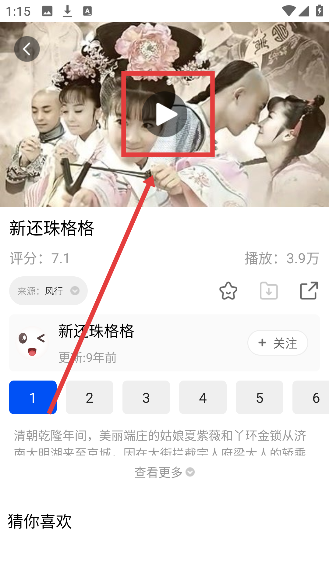 4、进入剧集播放页面后,点击播放按钮,即可开始观看《新还珠格格》啦。