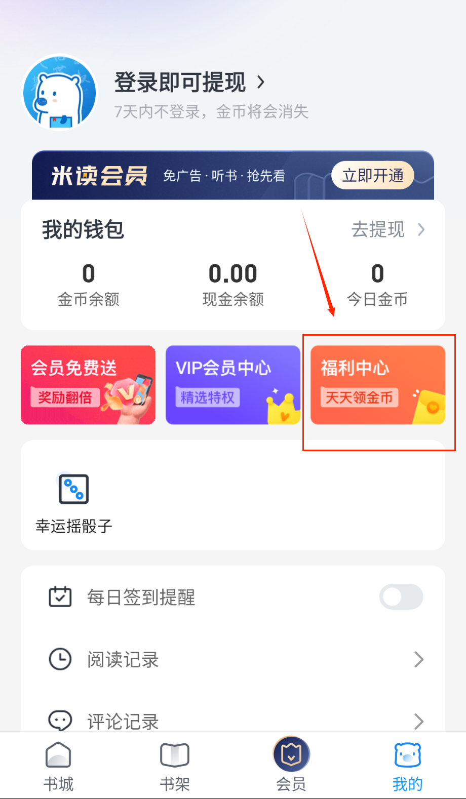 2、参与幸运摇骰子活动有机会获得金币,完成任务和阅读小说也能积累奖励,攒够额度就能提现。