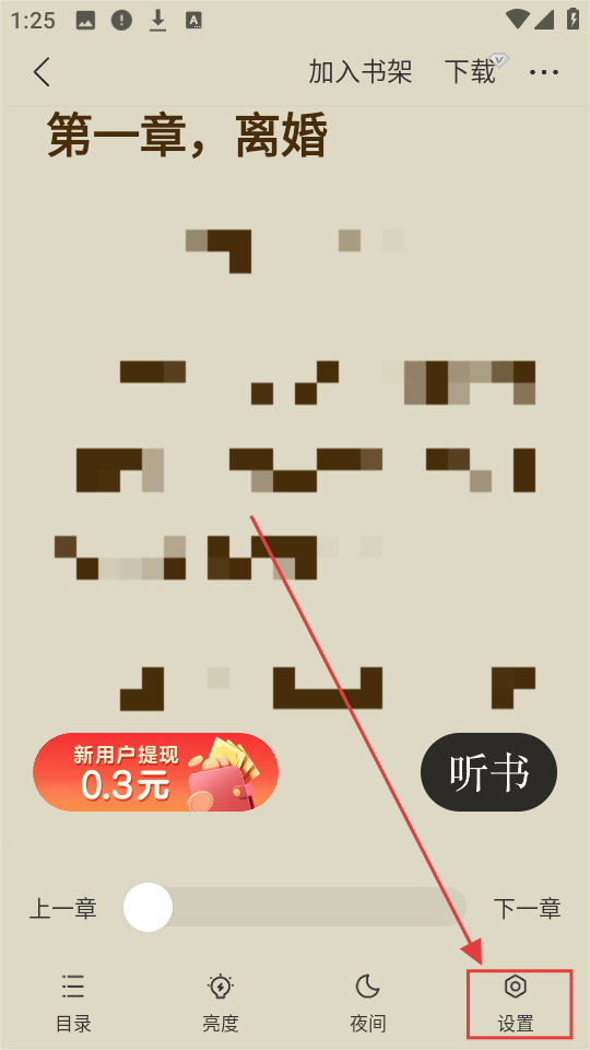 2、在阅读页,点击底部【设置】,可调整字体、背景、翻页等阅读相关设置哦。