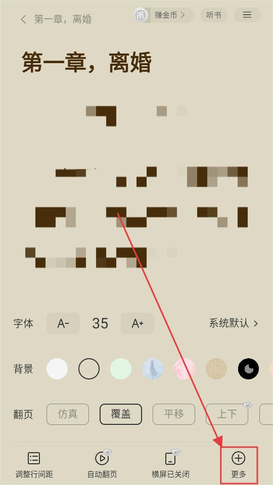 3、在设置选项里,点击【更多】,能进入更详细的阅读设置页面,有更多功能可调节啦。