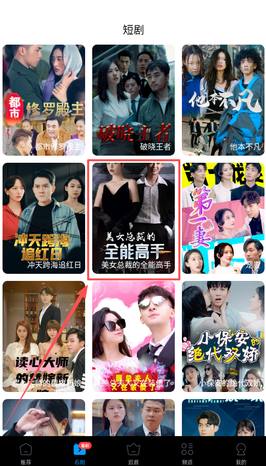 3、对于时间有限的用户,“短剧”专区提供了大量短小精悍的剧集,如“全能高手”快速满足观影需求。