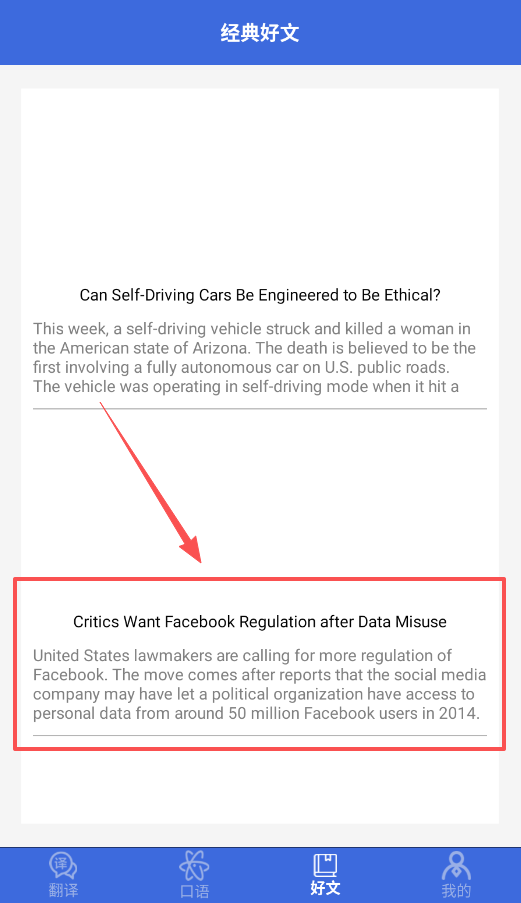 3、想提升阅读能力,可以看看好文板块的精选短文,内容挺新的,能顺便了解一些时事。