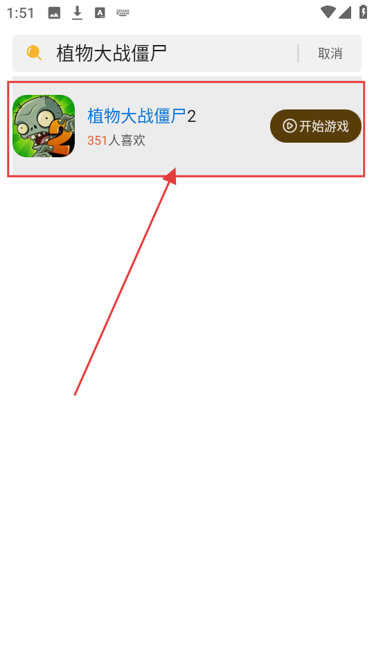 3、搜索到《植物大战僵尸2》后,点击游戏条目,就能进入详情页啦。