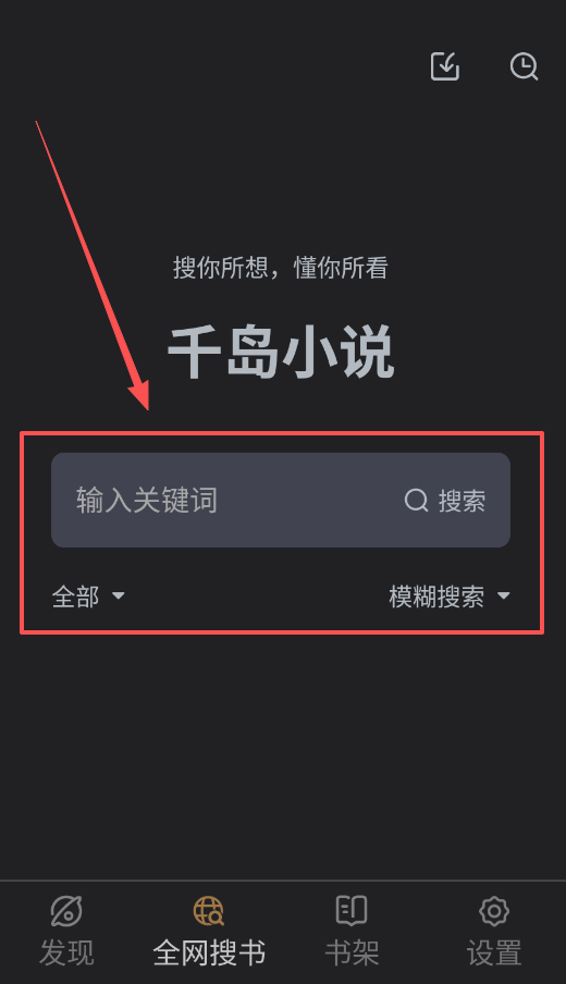1、搜索小说: 用户可以在千岛小说中搜索自己喜欢的小说,快速找到自己想看的小说,追书观看体验有趣。