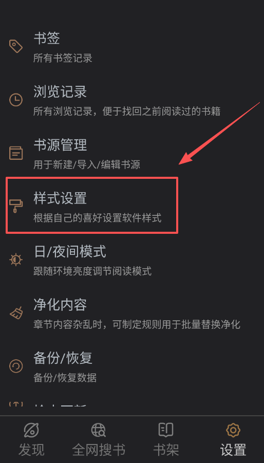 2、开始阅读前,建议先去样式设置里挑一个喜欢的主题和字体大小,这样读起来更顺心。