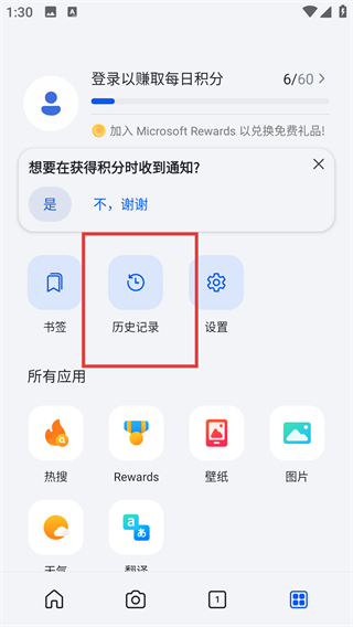 1、在个人相关页面点击【历史记录】选项,就能进入历史记录页面,查看之前的搜索等记录啦。