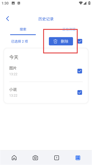 3、选中历史记录后点击上方【删除】按钮,就能把已选中的历史记录内容进行删除操作啦。