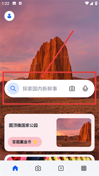 2、进入搜索页面后,可在搜索框内输入具体内容,还能使用相机、语音功能辅助搜索,超方便哦。