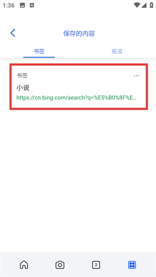 4、进入保存的内容页,在书签分类下能看到刚保存的【小说】相关书签,点它就能回到对应页面啦。