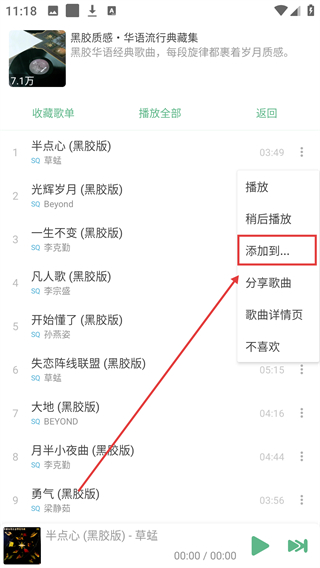 3、在操作菜单中选择【添加到...】,可将歌曲添加到指定列表中哦。