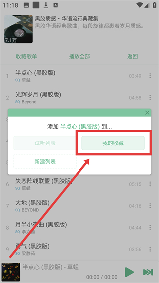 4、在添加选项里点击【我的收藏】,就能把这首歌收藏起来方便后续收听啦。