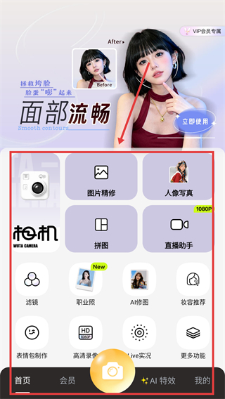 1、在首页,可选择【图片精修】等功能选项,进入对应的编辑页面开启图片美化流程哦。