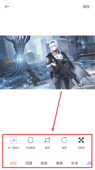 2、进入图片编辑页后,底部工具栏有【一键出片】【裁剪】等功能,能按需调整图片效果啦。