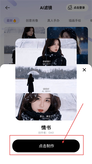 4、选中心仪的滤镜模板后,点【点击制作】按钮,就能应用该滤镜效果,让图片呈现新风格啦。