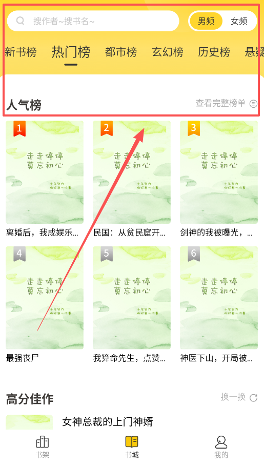 2、找书时进入"书城"页面,顶部有"新书榜、热门榜"等分类标签,直接点击书籍封面就能开始阅读。