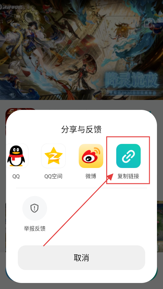 3、在分享与反馈选项框里,点击【复制链接】,就能把游戏链接复制到剪贴板,方便分享给他人啦。